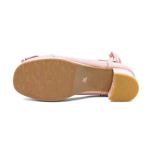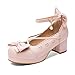 100FIXEO Women's Goth Platform Mary Jane Chunky Heels Kawaii Round Toe Ankle Strap Double Bow Cross-tied Dress Pumps, Pink, 10
