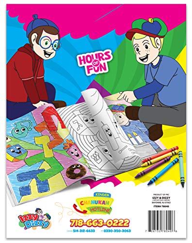 - INCLUDES: 1 Hanukkah Coloring Book with 24 Pages Of Fun Chanukah Coloring. This Kids Coloring Book Is Sure To Keep The Little Ones Entertained For Hours!, FUN CHANUKAH DESIGN : Hanukkah Coloring Book For Kids Featuring Animated Chanukah Pictures; Dreidels, Menorahs, Candles, Latkes And Of Course Gelt!, FUN LEARNING ACTIVITY: Not Only Are These Hanukkah Coloring Book For Kids Loads Of Fun And Entertaining, They Are Educational And Help Teach Children Of All Ages About The Festival Of Lights In An Engaging Way., CHANUKA COLLECTIBLES: Izzy ‘n’ Dizzy Boasts A Wide Array Of Chanukah Toys, Games, Arts And Crafts, Party Supplies And Stationary To Suit Toddlers And Children; Boys And Girls Of All Ages. Fun For All Ages!, BEST HANUKKAH GIFTS FOR KIDS: Whether You Are Looking For A Chanukah Gifts For Kids, A Prize, Themed Party Favors, Or Teacher’s Rewards, You Can’t Go Wrong With Izzy ‘n’ Dizzy’s Chanukah Goods.