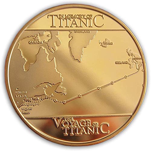 - The perfect Titanic front side of the coin displays sailing Titanic, with a shiny gold color ship, The back of the coin shows the Titanic Voyage, with a map of the journey, Very high-quality coin - placed in a protective capsule, ideal collectible gift, present., Perfect gift for collectors, lovely romantic gift or any other present, Coin measure 40mm in diameter weight is approx. 28 grams