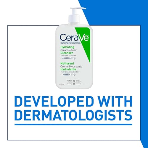 CeraVe Hydrating CREAM-TO-FOAM Cleanser. Face & Eye Makeup Remover with Hyaluronic Acid & Ceramides. Normal to dry skin. Gentle face wash for men & women, removes dirt, excess oil. Fragrance Free, 473ML