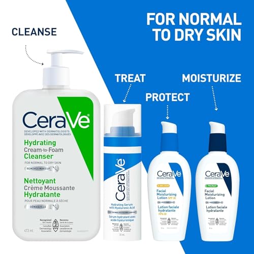 - Cream-to-Foam Cleanser & Makeup Remover: This hydrating cleanser transforms from a cream to a gentle foam, effectively removing dirt, oil, and even long-wear makeup, Hydrates & Replenishes Skin: Formulated with hyaluronic acid and three essential ceramides to hydrate and support the skin's natural moisture barrier, Gentle & Non-Drying: Thoroughly cleanses without stripping the skin of its natural oils or leaving it feeling tight and dry, Suitable for Normal to Dry Skin: This fragrance-free, non-comedogenic, and pH-balanced formula is gentle enough for even sensitive skin, Developed with Dermatologists: Expertly formulated to provide effective cleansing and hydration