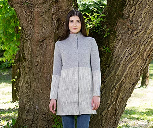 SAOL Irish Cardigan for Women Made of Wool Blend Ladies Ireland Sweater (Grey, Small)