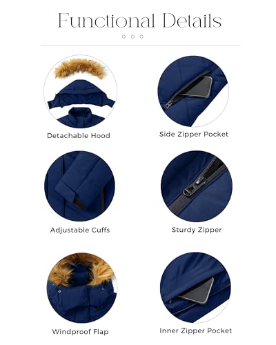 Wantdo Women's Cotton Padded Winter Jacket Waterproof Ski Jacket Mountain Snow Coats Navy M