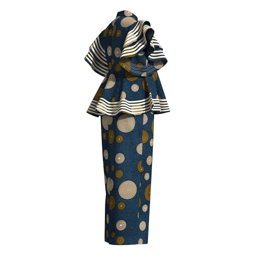 BAZINRICHE Women African Dresses Clothing Dashiki Bazin Riche Dress Women Skirt Set Print Ankara Zipper Top, Color- 1, XX-Large