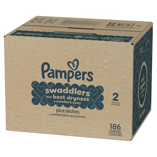 Pampers Swaddlers Diapers, Size 2, Absorbent, Keeps Baby Dry and Comfortable, Pediatrician Recommended Skin Safe Disposable Baby Diaper, 1 Pack (Count of 186)