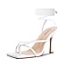 ISNOM Lace Up Heels Sandals for Women, Square Toe Open Toe Thong Strappy Heels Women's Stiletto Heeled Sandals -White