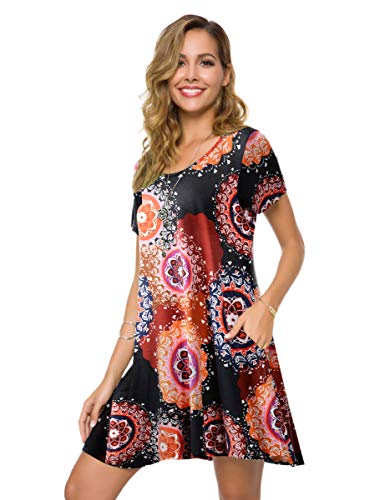 - Casual Dresses for Women - This tshirt dress is made from skin-friendly fabric,super soft and breathable.Perfect summer dresses for women beach,plus size dresses,house dresses for women with pockets., Plus Size Summer Dresses - The short sleeve swing dress featuring a scoop neckline,about knee length,on seam pockets,swing hem,flowy dresses,casual style,stretchy and comfortable to wear., Short Sleeve T-shirt Dress for Women - Simple basic tunic dress provide rich colors and floral,sunflower dress/tie dye dress/paisley dress/bohemian dress for women.Easy to pick up the suitable basic dress for you daily look,the colourful print make you look more cute,slim,charming and fashionable., Summer Dress for Women - Plus size t shirt dress design is comfy enough to wear around the house,office,work,shopping,party,traveling and beach walking,also suitable for summer out wear or home lounge sleepwear.Great for summer,fall and spring,easy dress up and down women dress can pair with shorts,high heels and winter jacket., US Regular Size - Flowy summer casual dresses for women with pockets,please check the size chart carefully before you purchase,S(US 4-8),M(US 10-12),L(US 12-14),XL(US 16-18),2XL(US 18-20),3XL(US 22-24),4XL(US 26-28),5XL(US 30-32+).Model is 5'7"(175cm)with 32D chest and wearing a Small.