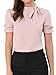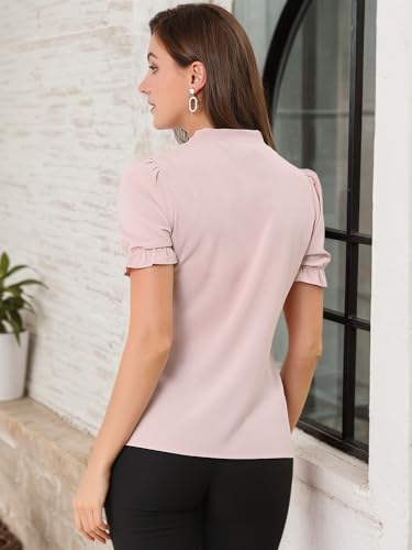 Allegra K Women's Bow Tie Neck Shirts Elegant Office Short Sleeve Femme Blouse Top Pink Large