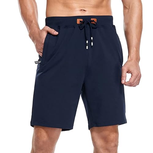 - ★[Mens Shorts Material]--- 70% cotton, 25% polyester, 5% spandex. High quality mens casual shorts, made from slightly stretchable and lightweight fabric, comfortable and skin friendly, keeps you soft all day. Machine washable & Water repellent., ★[Mens Elastic Waist Shorts]---- Fashion shorts for men match elastic waistband with adjustable strench drawstring. It’s drawstring is designed to have contrast color element, makes the basketball shorts more fashion and stronger., ★[Sports Shorts Pockets]--- Our gym shorts for men feature two side zipper pockets and one back pocket, Large pockets with zipper are nice touch in terms of protection of what is in pockets. They will be your intimate companion., ★[Gym Short Size]--- Men's flat front shorts get 8 size. Please choose your size according to our size chart in product description (Not the Amazon size chart) for a better fit. If you are not completely satisfied with our men workout shorts at any time, please contact us., ★[Occasions]---Men's athletic shorts pants are perfect for workout, gym, running, fitness, training, basketball, jogging, exercise, cycling, walking, all athletic activities or daily casual wear. This classic short is the best choice for any season.