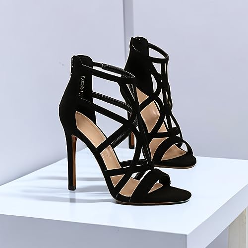 JOEupin Womens Open Toe High Heels Shoes Stiletto Dress Sandals, Black, 6