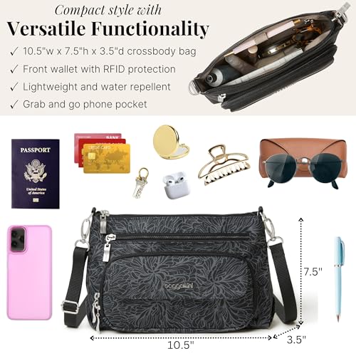 Baggallini Women's Original Everyday Bag RFID Crossbody, Midnight Blossom, One Size