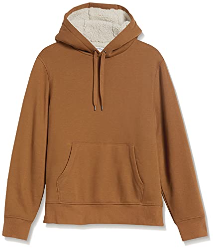 Amazon Essentials Men's Sherpa-Lined Pullover Hoodie Sweatshirt, Toffee Brown, Large