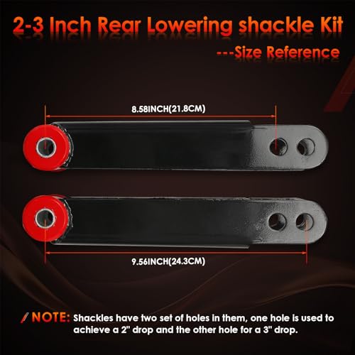 - 【PREMIUM QUALITY】The shackle is made of high quality materials with good antirust coating on the surface, which improves the sturdiness and rust protection to ensures long-term stability and excellent performance, 【OEM DESIGN】This 2inch lowering kit is manufactured to the OE specification to provide factory-fresh appearance and direct-fit that you can quickly and easily to level off the truck, 【REPLACES#】410730. The package includes 2x rear drop shackles, 2 screws. Please make sure the part number before purchase! The shackle has been tested to ensure trouble-free installation and performance, 【FITMENT】The leaf spring shackle installed on 2001-2006 chevy Silverado 1500HD, 2001-2010 chevy Silverado 2500HD, 2007-2010 chevy Silverado 3500HD, 2001-2006 GMC Sierra 1500HD, 2001-2010 GMC Sierra 2500HD, 2007-2010 GMC Sierra 3500HD trucks 2WD 4WD. Note: They only fit 2001-2010 HD model year trucks, 【12-MONTH WARRANTY】If for any reason at all, you are not fully satisfied with the rear leaf spring shackle, you can contact us through amazon message for carefree REPLACEMENT or REFUND.