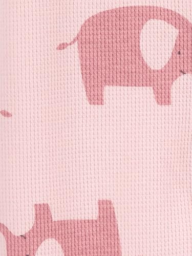 Simple Joys by Carter's Girls' Baby 2-Pack 2-Way Zip Thermal Footed Sleep and Play, Ivory, Floral/Elephants, Newborn