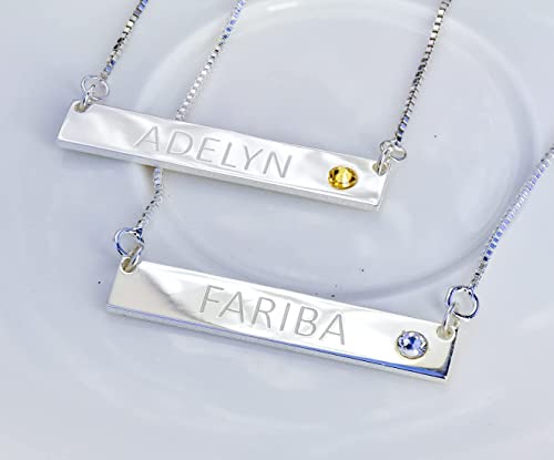 - Personalized Custom Sterling silver Horizontal Bar Necklace Pendant 3 Colors with birth stone, Laser engraving, profound and eternal, recording your and her moments and special figures,you can select the month for the birth day or meaningful day, We provide sterling copper and 92.5% sterling silver. You can choose. The appearance is electroplated with 18k gold to keep the pendant from oxidation., We can engraving any symbol ,not only names and script, also heart symbol, Puppy's footprints and other meaningful symbol you want, just contact us after you made your order., We provide a quick response within 12 hours. If you have any questions about customization, we are happy to serve you. Please contact us directly. We give a 60-day commitment to quality. If there is a quality problem, we can re-make it for you.