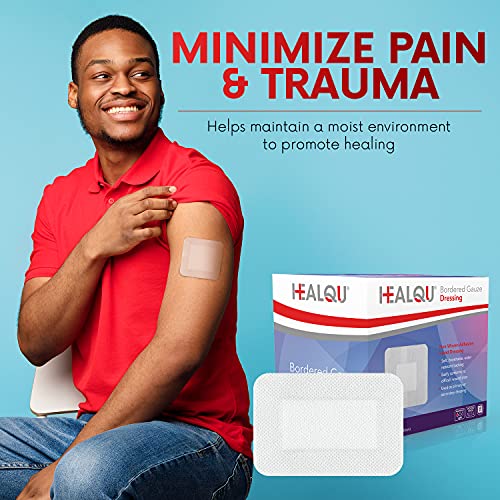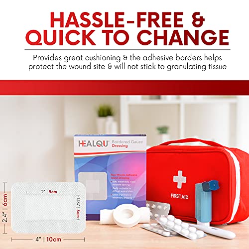 HEALQU Bordered Gauze Island Dressing - 50 Count, 2.4"x4" Sterile Individually Wrapped Gauze Pads with Water-Resistant, Non-Woven Backing - Soft and Breathable Wound Dressing for First Aid & Medical