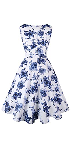 Dressever Women's 50s 60s Vintage Sleeveless Cocktail Party Dress, Porcelain, X-Large