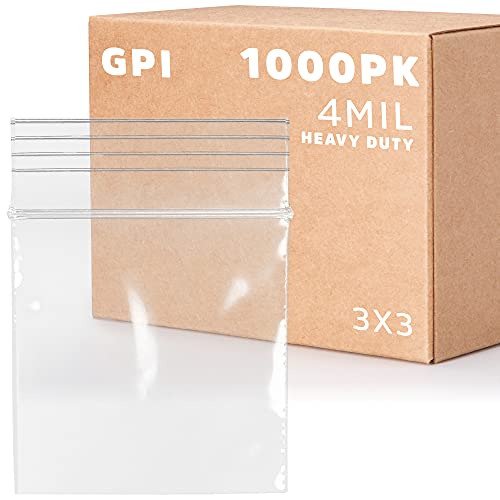 GPI - CASE of 1000, 3" x 3" CLEAR PLASTIC RECLOSABLE ZIP BAGS - Heavy Duty, Bulk 4 mil Thick Strong & Durable Poly Baggies With Resealable Zip Top Lock For Travel, Storage, Packaging & Shipping