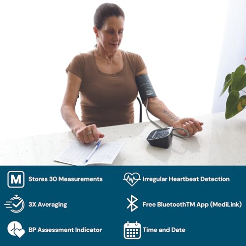 - Recommended by Hypertension Canada and Licensed by Health Canada, *BIOS Medical is the #1 Canadian Blood Pressure Manufacturer, according to 2021-2022 Nielsens Sales Data for Thermor Ltd. (BIOS Medical is a brand by Thermor Ltd)., Stores 30 Measurements with time and date, 3X Averaging takes 3 blood pressure measurements consecutively and averages the last two to show one average measurement., Free MediLink App - This monitor will connect via Bluetooth to Android and iOS devices. The MediLink App enables users to send secure data to physicians for interpretation, BP Assessment Indicator displays the range between which your blood pressure values lie, according to Hypertension Canada, Irregular heartbeat detection, Low battery indication, Included: Blood Pressure Monitor, Wide Range Cuff: 24-43 cm (9.4”-16.9”), and Instruction Manual