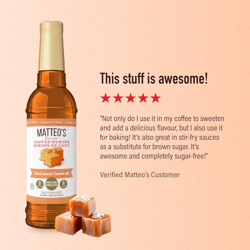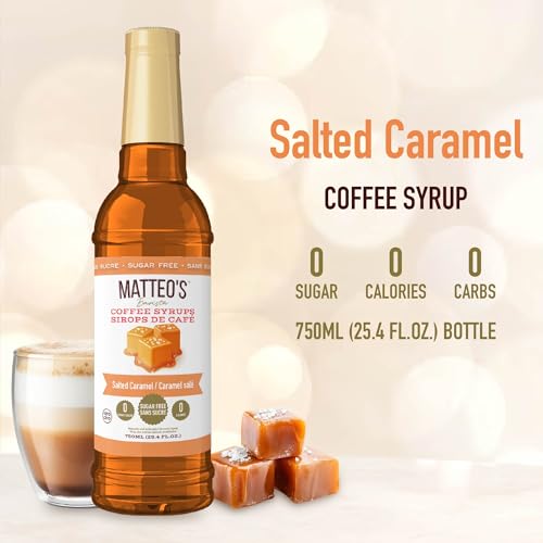 Matteo's Barista Style Sugar Free Coffee Syrup - Zero Calories Keto-Friendly Coffee Syrups & Flavors - USA-Made Kosher Sugar Free Coffee Flavoring Syrup For Home & Work (Salted Caramel, 25.4 Oz, 1-pk)