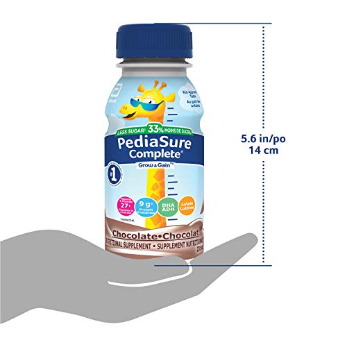 - 33% LESS SUGAR: Nutritional snack for kids, high in protein, with 27 vitamins and minerals. Contains 9 g of protein per serving and 33% less sugar compared to the original PediaSure Complete formulation., KID-APPROVED TASTE: A pediatric shake with a taste kids actually enjoy, recommended for use as part of a healthy diet Perfect toddler snacks for kids who lack variety in their diet, need more nutrients because of poor intake, or active kids who have high-energy expenditures., MOST RECOMMENDED: PediaSure Complete is the nutritional supplement that is chosen by more moms and dads and is a #1 pediatrician-recommended brand., COMPLETE BALANCED NUTRITION: PediaSure supports kids' growth and development Clinically proven to help kids grow: see visible results in just 8 weeks, PediaSure promotes healthy weight gain for kids., DHA: Contains DHA, an Omega-3 fat, that supports the normal physical development of your child's brain and eyes.