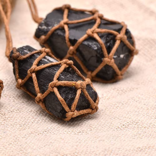 - Select quality raw tourmaline stone for this necklace; Hand wrapped up with knotted rope, The tourmaline pendant is 100% natural, big size(length:2.5-4.0cm, width:1.2-2.0cm), 15-20g/pc; It is black color, grown typical long strips on the surface, 90cm(35") long & sturdy rope extended from the knotted stone bag is for the necklace wearing; A hand braided sliding loop knot to adjust necklace length, This tourmaline pendant necklace has wild, retro & mysterious style, natural rough stone wrapped by hand, so every piece is different, very unique for each, Black Tourmaline is an excellent grounding crystal for meditation and healing, providing a connection between earth and the human spirit; Hanging in bedroom or car is another good choice