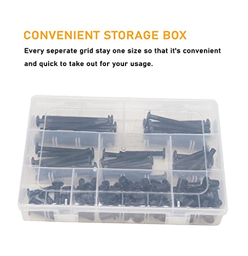 binifiMux 100pcs Black Hex Drive Socket Cap Bolts Dowel Joint Nuts Assortment Kit for Furniture Crib Connecting, M6x15mm/25mm/35mm/45mm/55mm/65mm/75mm