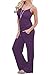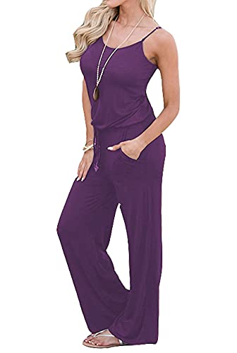 Artfish Women Casual Sleeveless Spaghetti Strap Striped Lounge Pajama Jumpsuit, 2026 Purple, Large