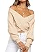 BTFBM Off The Shoulder Sweater for Women Spring Fall Fashion 2026 V Neck Long Sleeve Ribbed Knit Wrap Cropped Sweaters, Apricot, Small