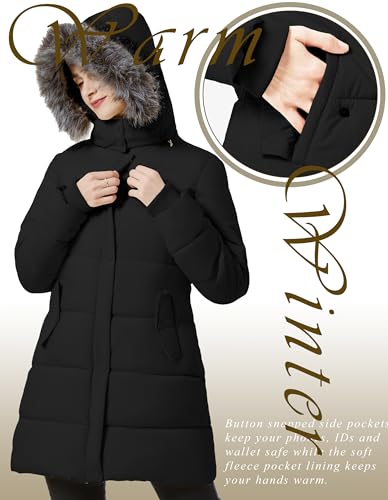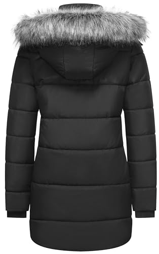 GGleaf Women's Winter Hooded Coat Thicken Puffer Parka Snow Jacket with Removable Fur and Hood, Black, Large
