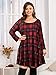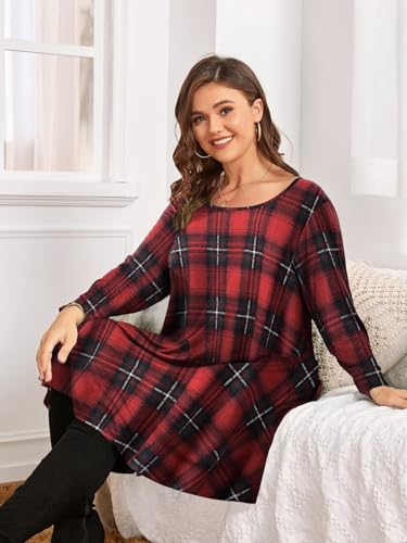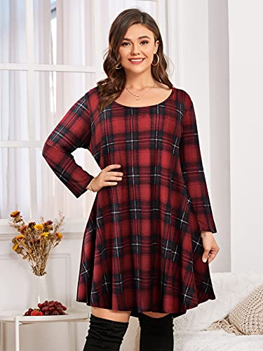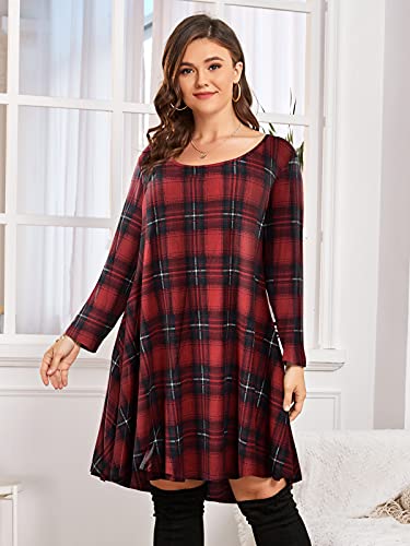 BELAROI Women's Plus Size Dress Fall Casual Swing 3/4 Sleeve Buffalo Plaid T Shirt Loose Tunic Dress(1X, 5-WineRed)
