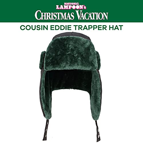 - NATIONAL LAMPOON HAT: Grey and green faux fur National Lampoon Cousin Eddie Hat with ear flaps and a stitched Christmas Vacation woven logo on the back, ONE SIZE: Faux fur hat can accommodate most head sizes and easily slips on for instant comfort. Russian trapper hat includes chin straps with antique silver metal snaps for easy resizing, LIGHTWEIGHT AND DURABLE: Faux fur hat features soft plush lining, a faux fur visor, and ear flaps to keep your head cozy and comfortable during cold and chilly weather, HAND WASH ONLY: Recommended for hand washing only, lay flat to dry and do not iron, OFFICIALLY LICENSED: Have confidence knowing you are purchasing an officially licensed and authentic National Lampoon product from Concept One