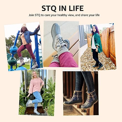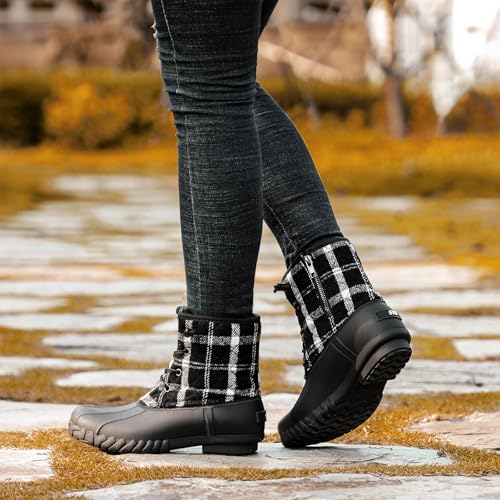 STQ Duck Boots for Women, Waterproof Rain Winter Boots Quilted Snow Boots Black Plaid, 8 US