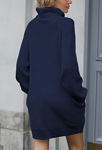 Pink Queen Women's Loose Turtleneck Oversize Long Pullover Sweater Dress, Y - Dark Blue, Large