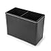 DreamsEden Black Pen Pencil Holder Cup, PU Leather Desktop Supplies Organizer 2 Compartments Storage Box Case Control Stationery Container for Office Home Bedroom