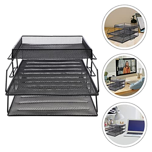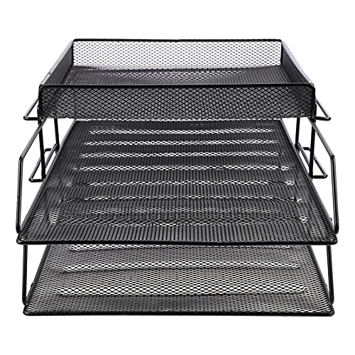 - desk stackable file trays keep your space organized and clutter ; 1 extra sorter, identify the contents of each compartment quickly, STURDY PAPER ORGANIZER TRAY- Made of lightweight metal mesh steel construction and environmental powder coat, blend in with any décor, sturdier and more durable, MULTI- ORGANIZER- for hold magazines, files, catalogs, newspapers, mails and much more. The paper tray organizer help you use your home or office space more efficiently, 【Stability Construction】Our organizer tray frame is constructed of industrial- strength steel wire mesh and reinforced with a steel frame, very sturdy and will not fade or rust. Rubber anti- slip feet to it from sliding or scratching surfaces., 【Space Saving】The flat letter tray with mesh desk accessories drawer organizer, and use it separately; Maximize your vertical space and keep your desk clear.