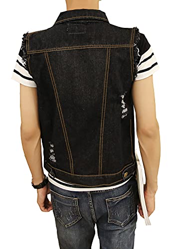 DAVID.ANN Mens Denim Vest Jacket Sleeveless Trucker Jean Jacket, #813 Black, X-Large