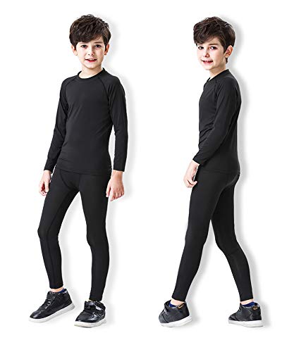 - 85% Polyester,15% Spandex. Fleece Lined. Machine Washable., BREATHABLE & MOISTURE WICKING:These thermal underwear sets are made of soft fabric, which can help absorb sweat and dry quickly , sweep away unpleasant smell for insulating from the cold., ULTRA SOFT & WARM FABRIC:It uses stretchy brushed interior material,Not only working excellently during winter outdoor activities, also can be an ultra-soft pajama set for cold winter nights., TOP & BOTTOM INCLUDED:4 Piece kids thermal underwear sets consist of a long sleeve scoop neck fleece top and full length thermal pants with elastic waistband, offer free movement., Various activities:Perfect for soccer, baseball, ice hockey, basketball, snowboarding, running and other activities in cold weather days.