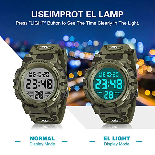 SYOKZEY Kids Watches for Boys Ages 5-15 Waterproof Sports Watches for Kids Girls Boys 8-12 Birthday Gifts Cool Outdoor Toys for 6-12 Year Old Boys Xmas Presents Stocking Stuffers Camouflage Light Blue