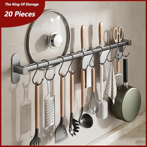 S Hooks Pack of 20 Black, S Hooks for Hanging Pots and Pans, Plants, Towels in Kitchen, Bedroom, Bathroom, Garden KC-YK15-MOR4