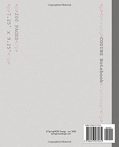 CODING Notebook: Code Workbook, Ideal for Software Developers, Engineer, Programmer, great gift idea for any coder. 7.5“x9.25” size, 200 pages (Glossy Cover)