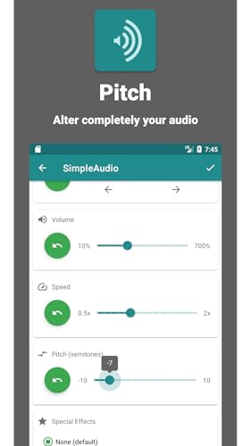 - Cut your audio between two intervals, Alter the volume level, ranging from 10% to 700%, Alter the speed level, ranging from 0.5x to 2x, Alter the pitch in semitones, Add special effects filters to completely alter your audio files