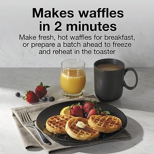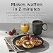 - MAKES DELICIOUS WAFFLES IN 2 MINUTES: Make waffles fast with the Proctor Silex Petite Waffle Maker. Make enough fresh, hot waffles to feed the family or prepare a batch ahead, freeze and then heat in the toaster when it's time to eat., EASY CLEANUP WITH PFAS-FREE NONSTICK COATED GRIDS: It's easy to lift cooked food from this small waffle maker because of its PFAS-free nonstick coated grids. Cleanup is easy too. Simply wipe the grids clean after the waffle maker has cooled off., CREATE PERSONALIZED WAFFLES & CHAFFLES WITH A VARIETY OF INGREDIENTS: Personalize waffles with the ingredients that each member of the family loves. Also great for making low-carb chaffles with cheese, eggs or for making other foods like hashbrowns., COMPACT & EASY TO STORE: The waffle maker has a minimal footprint on the countertop and is small enough to store in a kitchen drawer or cabinet., SIMPLE TO USE: The green ready indicator light illuminates when the round waffle maker is hot enough to add batter.