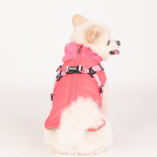 - Winter fleece vest with integrated harness, Puppia rubber label, Backside zipper closure, PUPPIA SMART TAG pendant(QR Code only) is included, Size: X-Large : 14.2" Neck, 22.8" Chest, 14.6" Product Length