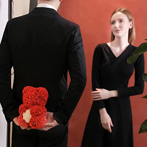 - 【Multi-surprise Gift Ideas】Are you looking for gifts for her? May be it's hard to pick best gifts for her of what you want. Now, here is the perfect 6 in 1 gift set prepared for you, which includes 1* red rose bear with white heart + 1* gift box + 1* i love you necklace 100 languages + 1* heart balloon + 1* greeting card + 1* led string lights., 【U UQUI Rose Teddy Bear】Design based on the shape of teddy bear, used fake roses, our flower teddy bear is made of rose petals, comes with cute and romantic attributes. The eternal rose bear with heart wrapped around led lights packed in a clear gift box, will bring a sense of sight that shines in front of you., 【Christmas Love Elements】Our Christmas bear theme is love. The necklace is engraved with the word "I love you to the moon and back" on it and can display i love you in 100 languages, it’s a romantic surprise. Love card adopted folding design, can be written in it. Besides, add red balloon and led light as mothers day decor, we believe all together will meet your expectations., 【Perfect Gift Ideas】The set can be used as gifts for women of all ages, may be you can let it as gifts for wife daughter sister mom grandma gifts, as gifts for girlfriend teenage girls or friends female also nicely. Is there have female unlike romantic and cute gifts? I guess not. So, what are you waiting for? Just get it!, 【As Flowers Decorations】Except as presents, rose teddy bear with box is a cute room decor, with a display box, it can be home decor accents, you will get a better mood when you saw it. At night, the light can create a warm and romantic atmosphere, it will be a great surprise as living room decor or kawaii room bedroom decor.