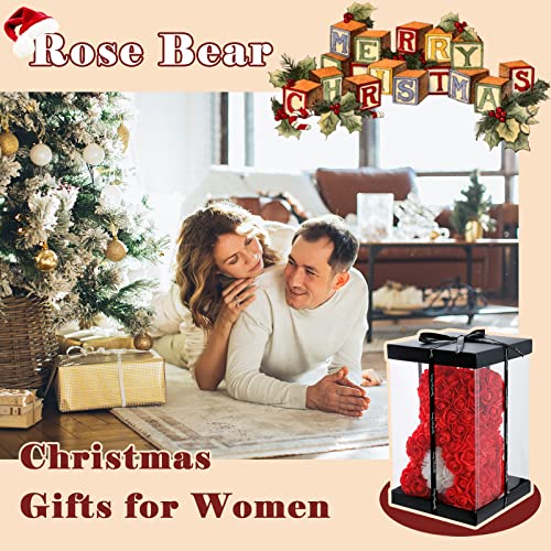 U UQUI Christmas Rose Bear Gifts for Women, Flower Bear Rose Teddy Bear with Box Lights I Love You Necklace Balloon Card, Cute Anniversary Birthday Romantic Unique Gift Set & Flowers Decoration