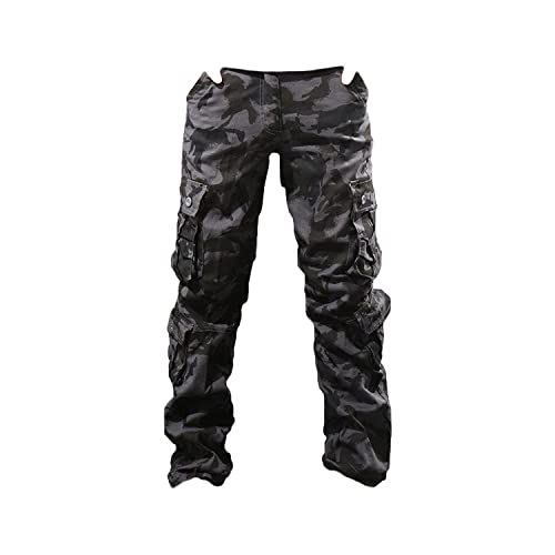 Men's Multi Pocket Camo Pants Relaxed Fit Casual Military Trousers Lightweight Hiking Outdoor Combat Cargo Britches, Black, 30, Classic