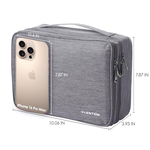 LENTION Electronics Travel Organizer, Large Double Layer Tech Pouch for Electronic Accessories, Portable Travel Organizer for Power Bank, Phone, Cord and More(M370, Gray)