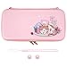 - Pink carrying case is customized for Nintendo Switch Lite 2019, with easy-to-slide double zippers, and a cute and comfortable patterned on the surface of the case. A pair of extra joystick caps was also given, This carrying bag is made of waterproof and hard PU material, which can provide protection and storage for your Switch Lite. Soft skin-friendly lining protects your console and accessories from scratches well. Internal fixing strap in the middle keep your console in place and prevent it from moving around, Built-in 10 game card slots in Switch Lite case bag, allowing you to easily carry your favorite games. A built-in zippered mesh pocket can fix extra cables, earphones and other small but essential accessories. Note this can't accommodate larger items like chargers, Cute Switch Lite traveling case is very light and thin, with a removable wrist strap, which is compatible to carry and easy to travel. You also can easily put the case into backpack without adding too much volume, What You Get: 1* Switch Lite carry case (9.2*4.8*1.7inches; 0.44 pounds); 1* Hand strap; 2* Thumb grips caps. Note: the console and other accessories are NOT included.