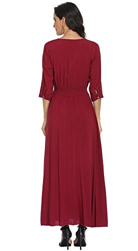 Ferrendo Women's Floral Maxi Dress Button Up Split Flowy Bohemian Party Beach Dresses, P-wine, XX-Large